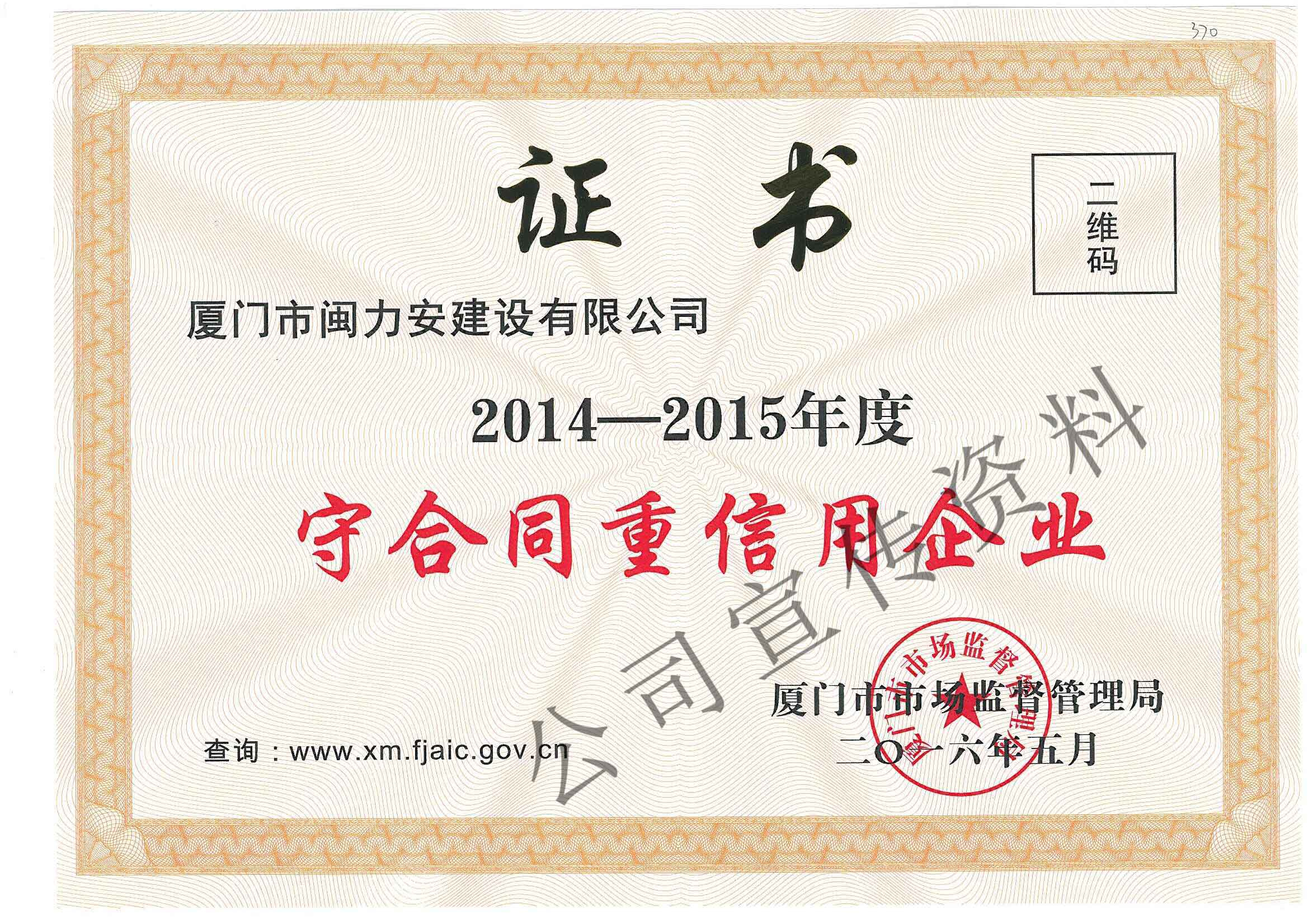廈門市閩力安建設有限公司成立于2003年,公司取得市政公用工程施工總承包貳級、建筑裝修裝飾工程專業承包壹級、城市及道路照明工程專業承包壹級、電子與智能化工程專業承包貳級、消防設施工程專業承包貳級、電力工程施工總承包叁級、建筑機電安裝工程專業承包叁級、輸變電工程專業承包叁級、環保工程專業承包叁級、照明工程設計專項甲級、建筑裝飾工程設計乙級、施工勞務等資質的綜合型企業,公司于2013年通過了ISO9001質量體系認證,ISO14001環境管理體系認證,OHSAS18001職業健康安全管理體系認證。